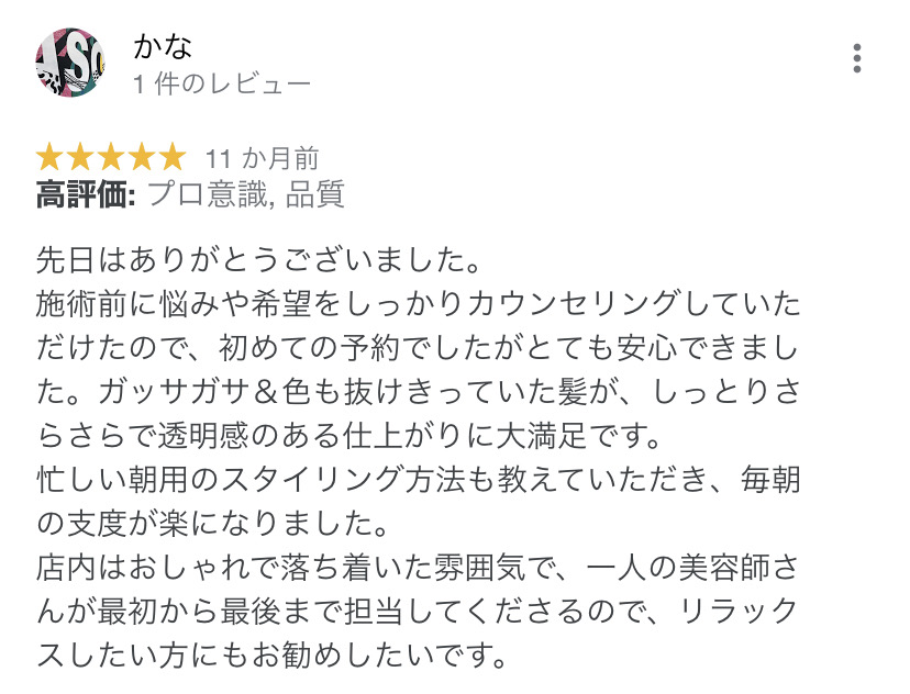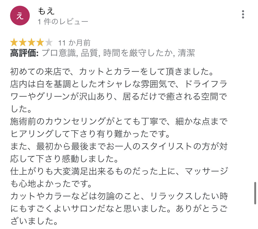 【グーグルマイビジネスでいただいた口コミです】